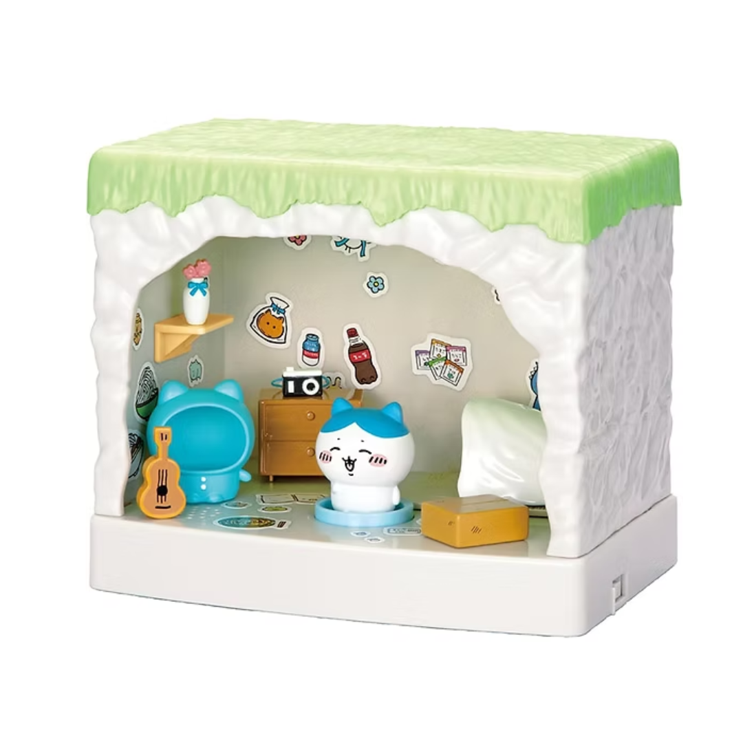 「吉伊卡哇快來玩吧!來聊天吧!小八貓的家」玩具娃娃屋,以原作中的小八貓家場景為基礎,還原簡陋地讓人心疼的小洞窟,將附屬的小八貓裝在家中搭載有語音裝置的坐墊上,就會發出 12 種小八在劇中的音效,包含「總會有辦法的」、「這樣最棒了!!」等溫暖的台詞;與系列的其他角色搭配,更可以發出多達 35 種的特殊音效!例如將系列第一彈的人偶「巨大布甸造型屋」(另售)、「小可愛的家」(另售)和「Chiikawa 朋友套裝」(另售)放入其中時,甚至可以說話!